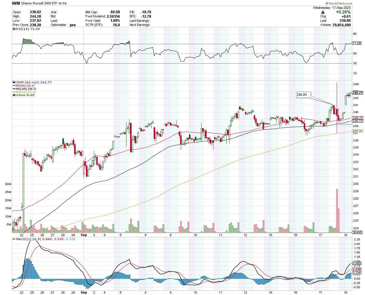 IWM was trading at $242.77 pre-market. Support is nearby at $240.93, while the potential upside levels stand at $244 and $245.