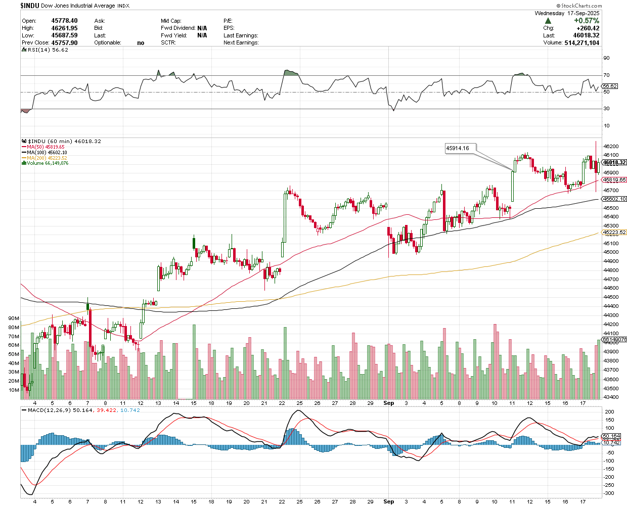 On September 17, 2025, U.S. stock indexes showed mixed results following the Federal Reserve's decision to cut its benchmark interest rate by a quarter percentage point to a range of 4% to 4.25%, the first cut since December. The Dow Jones Industrial Average rose 0.6%, reaching an intraday high of 46,261, while the Nasdaq Composite fell 0.3% and the S&P 500 dipped 0.1%.