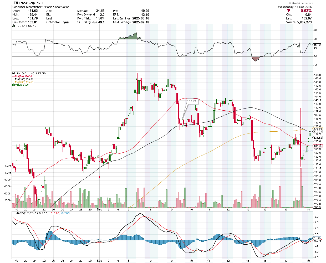 LEN was trading at $135.50 pre-market. Support is at $134.39, while the potential upside levels stand at $136.68 and $137.92.