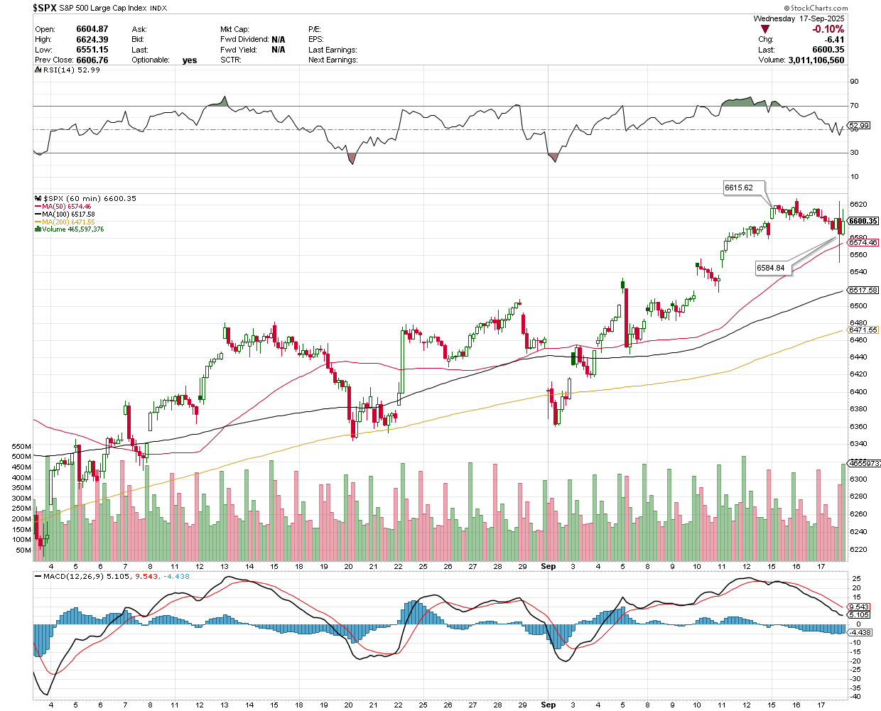 Closing at 6,600.35, the S&P is trading above support at 6,584.84. If buyers hold this level, the potential upside targets are 6,615.62 and 6,630.