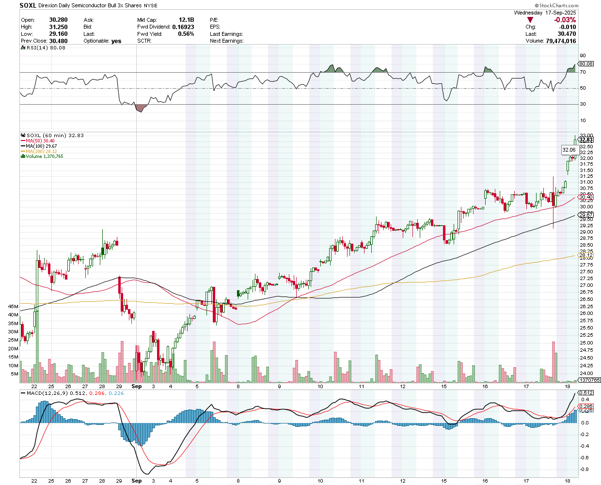 SOXL was at $32.83 pre-market. Support at $32.06 must hold to fuel a move towards $33.50 and $34.